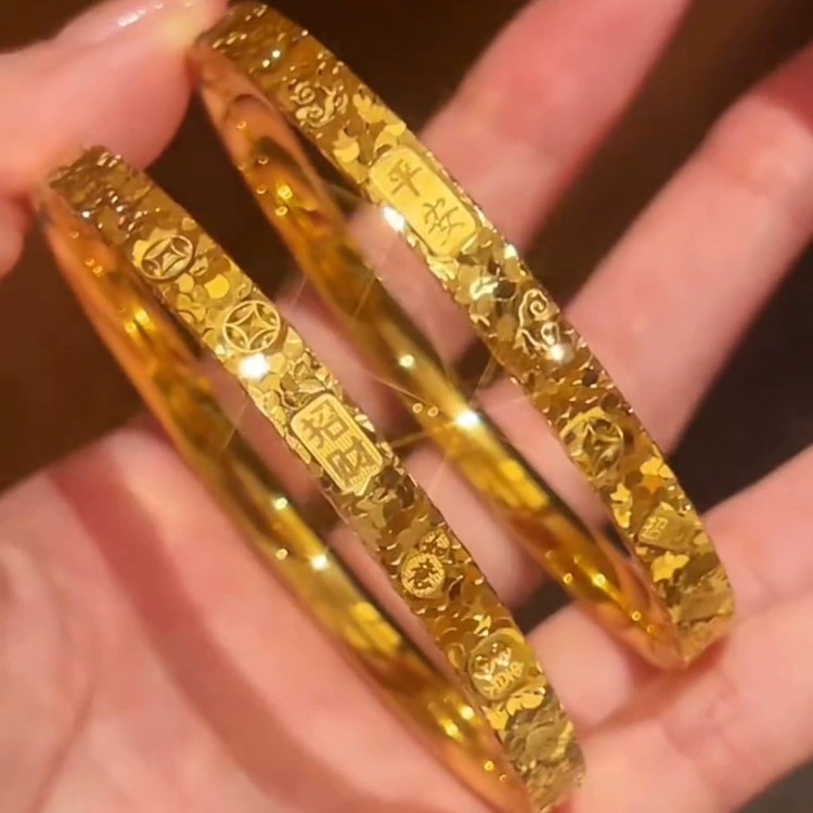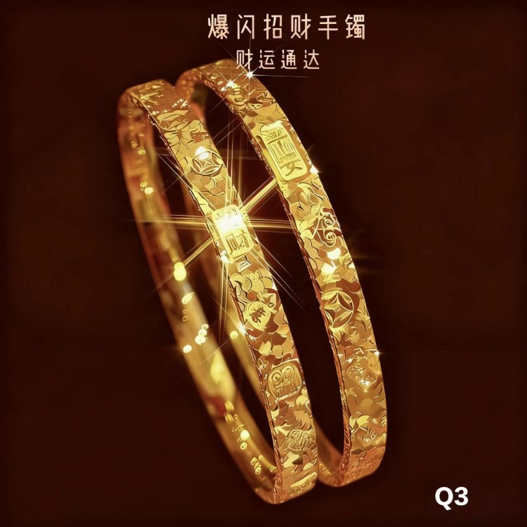 它的款式丰富多样:既有简约闪耀的光面款,也有带招财、吉祥等寓意的浮雕/挂坠设计,风格适配日常通勤、休闲搭配,兼顾美观与性价比。